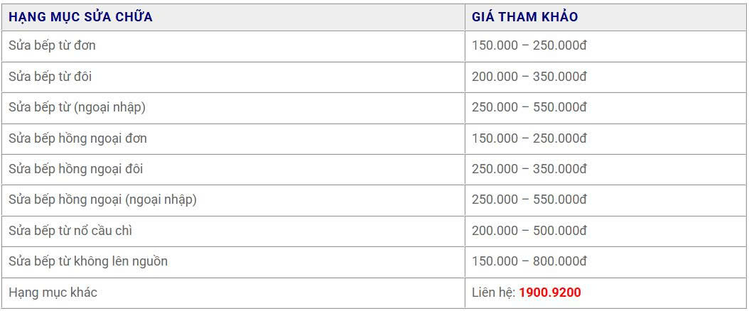 3. Bảng giá sửa bếp điện minh bạch và công khai